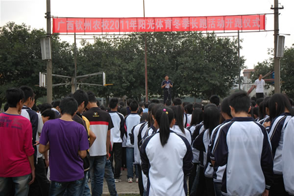 阳光体育冬季长跑活动启动仪式现场伍国樑副校长宣布2011年阳光体育冬季长跑活动正式启动郑修营科长宣读2011年阳光体育冬季长跑活动的实施方案相关科室的领导参与阳光体育冬季长跑活动启动仪式参与阳光体育冬季长跑活动启动仪式的学生会干部冬季长跑活动现场