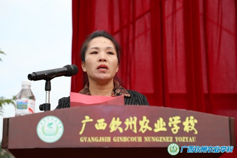电子设备222班莫愈权同学的家长杨进兰作为家长代表发言,她对同学们寄予了殷切的希望,嘱托同学们要保持健康与快乐、用于拼搏和担当、正视困难与挫折、学会感恩与敬畏。并感谢学校培养同学们,鼓励同学们开启新的航程,为母校争光。