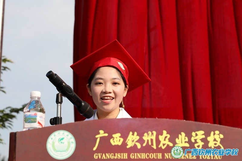 学生代表特色213班杨巧在发言中感谢父母和老师们对自己的付出和教导,代表全体同学承诺,将不负历史与社会的重望,努力提高自身修养,学习文化知识,成为实现中华民族伟大复兴的先锋力量。