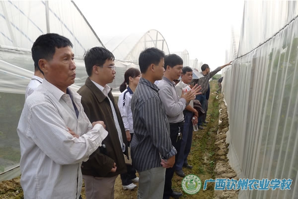 伍国樑副校长亲自带领学员到钦州市钦北大棚蔬菜生产示范基地参观学习