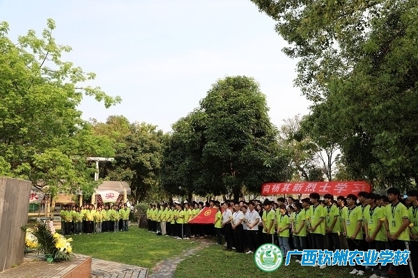 杨其新系钦州市钦北区小董镇那陵村公所屯陵村人,1975年10月出生,1992年9月考入钦州农校就读多种经营专业921班,1994年7月23日暑假返家途中,在小董镇饼岭江奋不顾身抢救落水客车乘客,光荣牺牲。杨其新牺牲后,1994年8月18日,共青团广西区委追认其为“全区优秀共青团员”;1995年9月26日,民政部授予其为“革命烈士”。中共钦州市委、政府和广西区农业厅分别先后做出了“向杨其新烈士学习”的决定。我校将杨其新烈士列为学校的永久性德育教育榜样,并在学校馨园建立杨其新烈士纪念雕塑,激励一代代钦农人。
