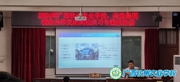2024年4月1日晚,由我校招生和就业办、商贸学部、理工学部组织的海信集团—海信(广东)信息产业园校企合作岗位实习专题报告会在阶梯教室顺利举行。报告会由我校招生和就业办梁琼今副主任主持,参加本次报告会的有2022级计算机应用、电子信息技术、智能设备运用与维修三个专业的学生。