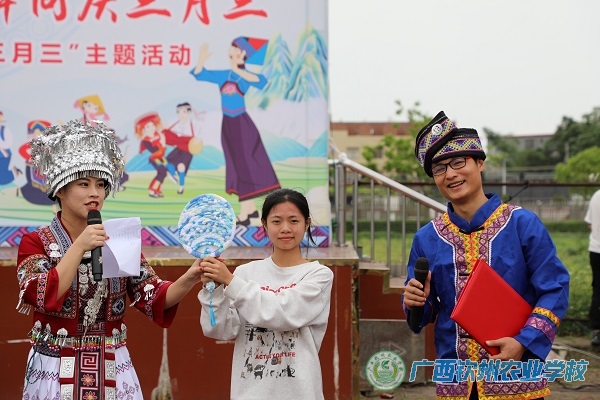 随后,进行了壮族“三月三”知识有奖问答环节。主持人向现场观众提问,内容涉及壮族“三月三”节日的历史、文化、风俗等方面。同学们积极参与,争相抢答,既展示了自己的知识储备,也加深了对民族文化的了解。