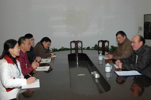 我校主持工作的伍国樑副校长(左二)向工作组汇报工作