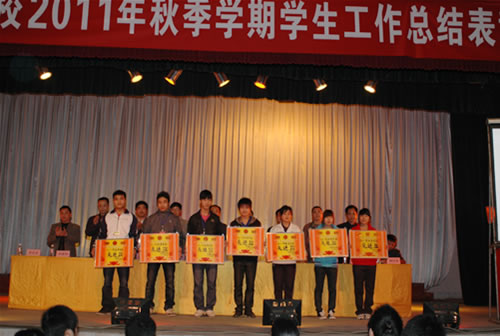 学生科郑修营科长宣读2011年秋季学期学校的评优表彰决定