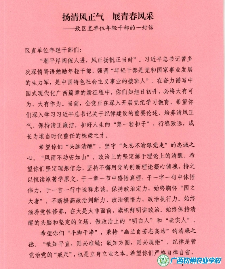 扬清风正气 展青春风采——致区直单位年轻干部的一封信