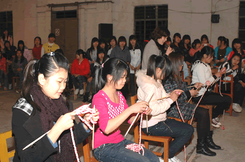 毽子飞扬吹气球比赛织毛衣比赛覃一静副校长为获奖女生颁奖开心一刻