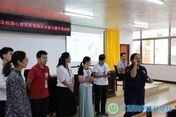 为切实推进学校心理健康教育工作,提高师生心理素质,普及心理健康教育知识,促进师生身心和谐发展。9月25日,我校在第二教学楼多功能报告厅开展了自治区农业农村厅属院校心理健康送教入校活动。活动分为两场,上午场由蓝盾心理救援中心讲师崔程程主讲,22级180名学生参加,下午场由南宁市蓝盾心理救援中心讲师组组长王玗主讲,我校全体教职工参加了活动。