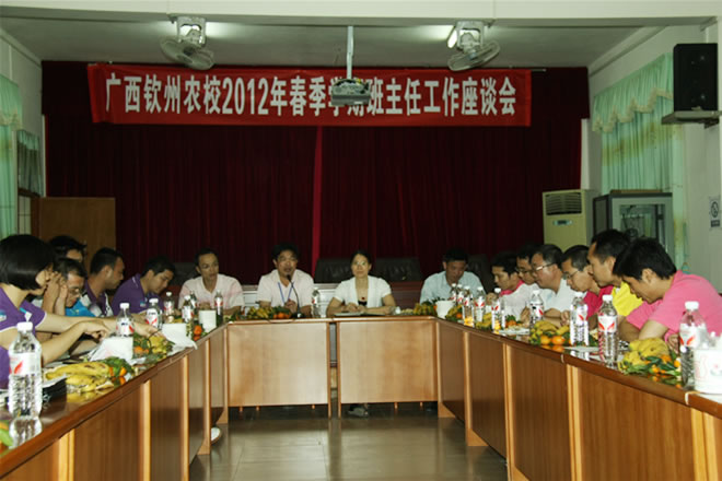 4月25日晚,学生科组织召开2012年春季学期班主任座谈会,主持学校工作的伍国樑副校长和分管学生工作的覃一静副校长及相关科室负责人参加了座谈会。