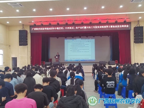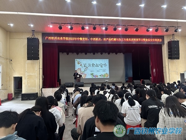 2025年3月12日,广西钦州农业学校成功举办了2025年中餐烹饪、中西面点、农产品贮藏与加工专业实训制度学习暨食品安全培训会。本次培训会由我校现代农业教学部主任邓万超授课,旨在强化学生对专业实训室管理制度的理解,提升食品安全意识,来自三个专业共800多名学生及其班主任参加了此次培训。