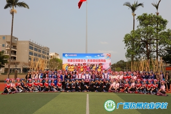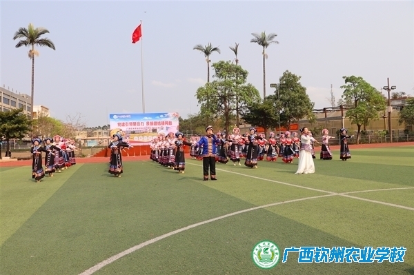 春回大地,万物复苏,在广西三月三佳节来临之际,3月26日下午,我校在大操场和文化广场成功举办了一场盛大的三月三主题活动,学校党委书记伍国樑、党委委员、副校长李运光、党委委员、副校长邓业斌以及相关科室领导还有全体师生共同参与了此次活动。