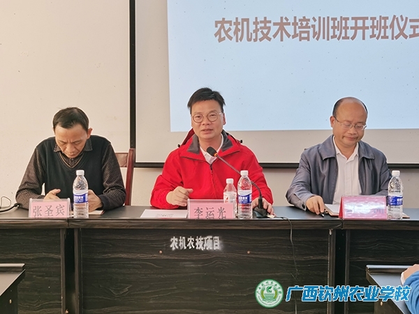 4月7日,由我校承办的2025年钦北区第一期高素质农民培育农机技术培训班在钦北区农机服务中心正式开班。钦北区农机服务中心主任班定洲,学校副校长李运光、培训中心主任陆宏松出席开班仪式,来自钦北区各乡镇的30名农机手参加培训。此次培训为期15天,以“集中授课+实训操作+线上学习+外出学习”的多元形式开展,紧扣中央一号文件“强化农业科技支撑,加快农机装备补短板”要求,旨在通过系统性培训推动农机技术应用与农业现代化深度融合,为乡村振兴培育专业化人才队伍。