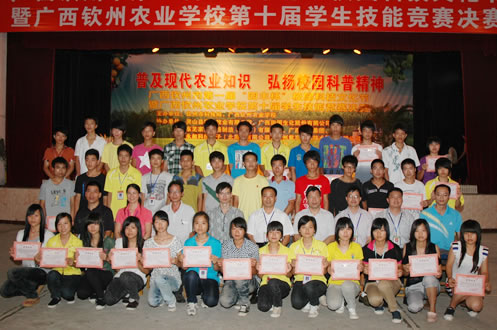 5月22日下午,由我校和钦州市科技局共同主办的“钦州市第一届‘园丰杯’校园科技文化节暨广西钦州农业学校第十届学生技能竞赛决赛”在学校大礼堂举行闭幕式暨颁奖仪式。科技局有关领导及部分企业代表到场指导,学校领导出席闭幕仪式并为获奖选手颁奖。