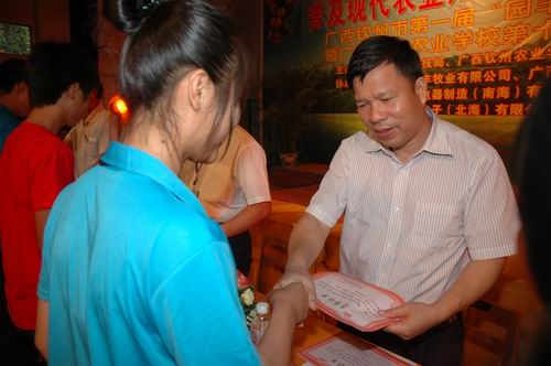 闭幕式上,学校领导还向赞助支持本次活动的企业授予证书,广西钦州农业学校与灵山县园丰牧业有限公司签订了校企合作协议,进一步加强了校企合作办学的人才培养机制。以科普活动搭建校企合作平台,推进校企之间的深层合作,是本次活动的亮点之一。