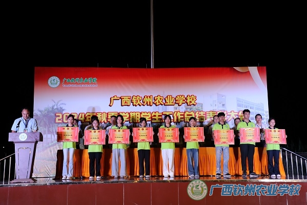 表彰大会在雄壮的国歌声中拉开了序幕。首先,团委书记张小鹏宣读《广西钦州农业学校关于表彰2024年秋季学期团工作先进集体及先进个人的决定》,学生科科长陈贵才宣读《广西钦州农业学校关于表彰2024年秋季学期学生工作先进集体及先进个人的决定》。接着,领导们为获奖的班级及个人颁奖,奖项涵盖“先进班集体”“优秀学生干部”“劳动积极分子”“文明宿舍”等,覆盖学生会、班级、社团等多个层面。