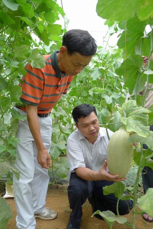 周副校长深入大棚了解甜瓜生长情况