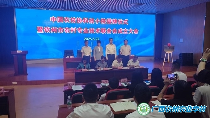 2025年5月27日,中国农技协科技小院授牌仪式暨钦州市农村专业技术联合会成立大会在钦州市高新技术产业服务中心隆重召开。本次会议由钦州市科学技术协会主办,自治区科协党组书记梁春花、钦州市委副书记、政法委书记庞科伟、广西农技协理事长钟会超等领导到会,会议由钦州市科学技术协会主办主席何立伟主持,钦州市农业领域专家齐聚一堂,共谋乡村振兴新篇章。广西钦州农业学校作为乡村振兴人才培养的重要力量受邀参会。