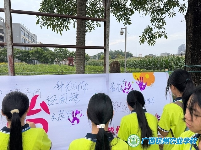学生在心理健康倡议横额上印手印