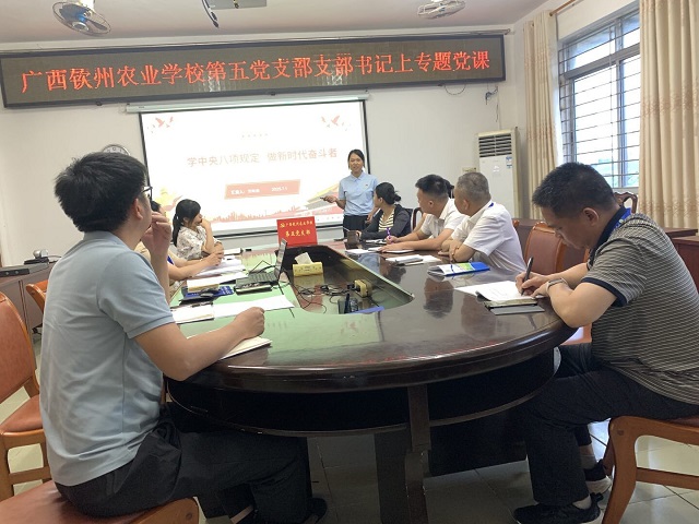 为深入贯彻全面从严治党要求,持续加强作风建设,7月1日下午,我校第五党支部开展“学中央八项规定 做新时代奋斗者”专题党课学习。党课由党支部书记劳海燕同志主讲,全体党员参加学习。