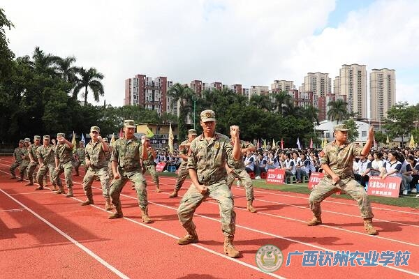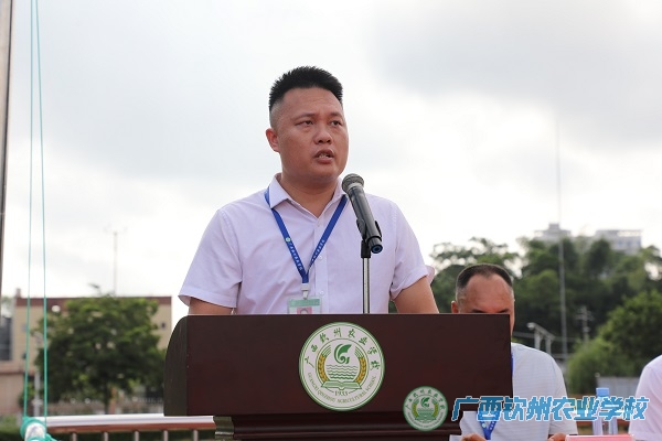 钦南区人民武装部军事科张景松在讲话中强调了军训对于增强国防意识、培养纪律观念的重要意义,并勉励同学们以军人的标准要求自己,刻苦训练、团结协作。