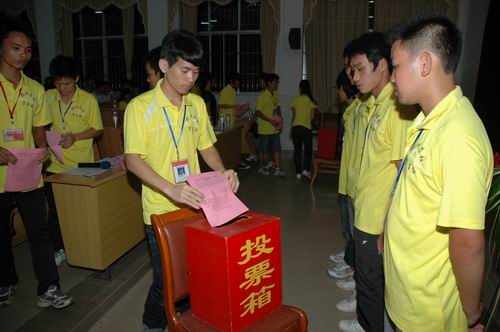 大会在庄严的国歌声中拉开了序幕,大会听取并审议了《第二十六届学生会工作报告和第二十七届学生工作纲要》。并由学生科郑修营科长介绍第二十七届学生会候选人情况,经过候选人逐个上台演讲和公平的投票选举后产生了新一届的学生会。