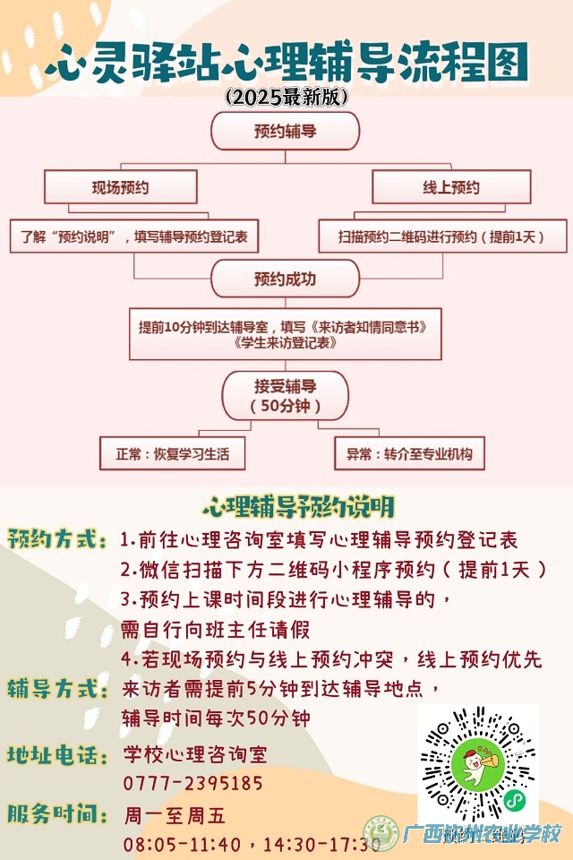欢迎加入广西钦州农业学校这个温暖的大家庭!作为学校的心理健康老师,我们深知从初中步入中职学校是一个重要的转折点,你们面临着新环境、新同学、新学习方式的挑战。这份心理调适指南将帮助你们更好地适应新生活,开启人生新篇章。
