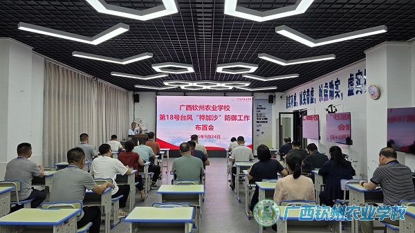 梁文宇校长首先传达了钦州市防汛抗旱指挥部的《告市民书》和《告企事业单位书》,通报了台风“桦加沙”的最新动态及气象预警信息,强调此次台风强度大、影响范围广,全校上下必须摒弃麻痹思想和侥幸心理,遵循生命至上的原则。确立“预防为主、防治结合、快速响应”的工作原则,要求各部门以“不伤亡、少损失”为目标,扎实做好台风防御各项准备。