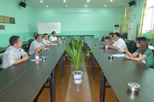 6月16日,主持学校工作的伍国樑副校长、招生办邓喜和主任、培训与就业中心班用名主任、总务科胡礼荣科长等一行5人到广西凤翔集团洽谈校企联合办学事宜,凤翔集团王晓董事长接见。