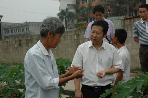 王健副厅长(前排右)与我校老农艺师蔡恒徽亲切交谈