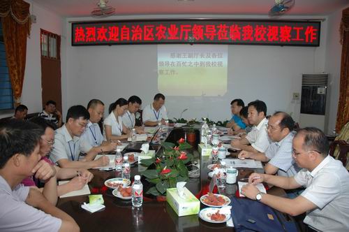 6月20日上午,自治区农业厅王健副厅长率厅科教处胡德泉处长、陈振华副处长、计财处赵云文副处长、人事处封善坚副处长等一行8人到我校进行工作调研。