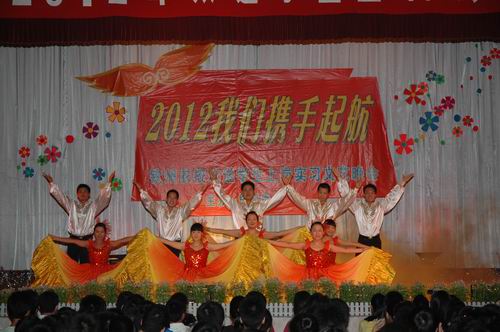 栀子花开,又是一年离校季。6月27日晚八点,由学校团委主办的“携手起航”2012年欢送学生上岗实习文艺晚会在学校大礼堂隆重召开,学校领导覃一静、周家立副校长,刘波、李红调研员,工会陆武昌主席等出席了晚会现场。