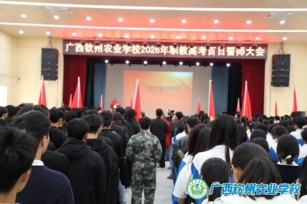在距离2026年职教高考仅剩百天之际,为了激励2023级学子全力冲刺职教高考,帮助学生调整心态,树立自信自强的必胜信念,增强学生的紧迫感和危机感,以严肃、认真的态度复习备考。12月16日下午,我校在大礼堂召开了2023级升学班、特长班职教高考誓师大会。大会在庄严的国歌声中拉开了序幕。学校党委书记伍国樑,党委副书记、校长梁文宇,副校长邓业斌出席活动,各科室负责人以及2023级升学班、特长班班主任、科任老师以及2023级升学班、特长班全体学生参加了大会。