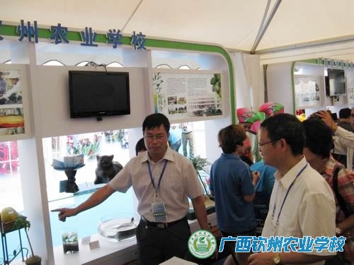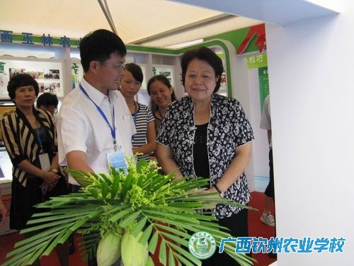 在参展期间,我校学生的技能作品《扬帆起航北部湾》(艺术插花)、《石龟》、《矮红1号木瓜新品种选育》等作品吸引了广大参观者,整个展位每天参观人员络绎不绝、热闹非凡。教育部鲁昕副部长、广西壮族自治区人民政府李康副主席、教育部教育与成长教育司司长葛道凯、广西教育厅黄宇副厅长等领导亲临我校展位现场指导,对我校学生技能作品和为“三农”服务培养技能型人才表示充分肯定和赞赏。
