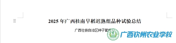 根据农业农村部稻米及制品质量监督检测中心(杭州),广西农科院水稻所等权威部门数据分析,我校“钦农两优991” 2025年初试,在南宁、百色、合浦、贵港、玉林、藤县等六个试点平均亩产542.39公斤,米质符合部标优质一等食用中粒形籼稻品种品质规定要求,符合绿色品种标准,2025年广西水稻品种试验年会审议意见,建议进入2026年区试+生试。
