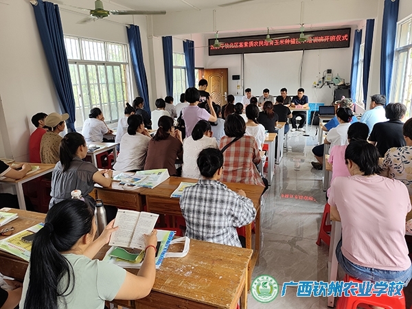 4月8日,由我校承办的2026年钦北区高素质农民培育玉米种植技术培训班在钦州市钦北区大直镇大直村委会顺利开班,大直村委50名种植户学员参加培训。