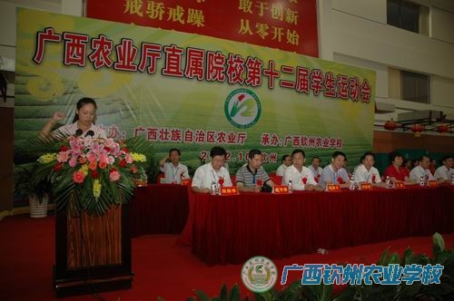 2012年10月24日上午,以“团结、奋进、文明、育人”为宗旨的自治区农业厅直属院校第十二届学生运动会在钦州市中青球馆隆重开幕。副厅长王健出席开幕式并宣布开幕。厅人事处、计财处、科教处等处室领导,8个参赛学校的领导和2个观摩团的领导也出席了开幕式。运动会开幕式由科教处副处长陈振华主持。