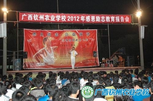 11月14日晚,感恩励志教育报告会在我校大操场举行。大会邀请了岑溪籍激励师专家黄友先生进行感恩教育的演讲。学校领导伍国樑校长、覃一静副校长、周家立副校长等出席并聆听了演讲。