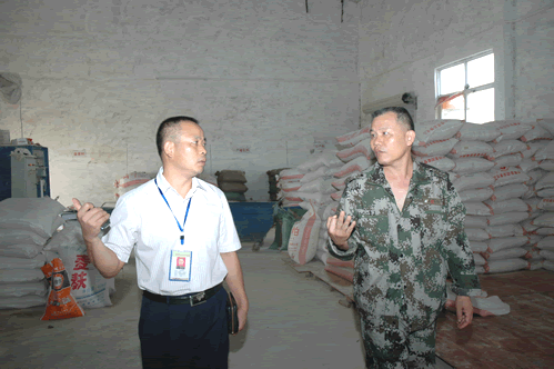 伍国樑校长深入饲料加工车间了解情况