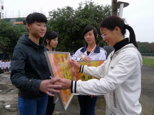 覃一静副校长为获奖班级颁奖领奖代表和领导合影演讲比赛现场校道横幅营造气氛黑板报比赛