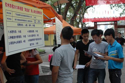 6月28日,我校与钦州市钦北区人社局联合举办的2011级学生顶岗实习双向选择洽谈会在我校隆重举行,2011级全体学生及2010级部分尚未落实就业单位的毕业生共1000多人参加了洽谈会。学校领导及钦北区人社局领导亲临洽谈会现场观摩指导。