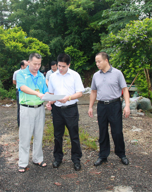 文信连总农艺师认真听取我校工会陆武昌主席介绍农场平面图