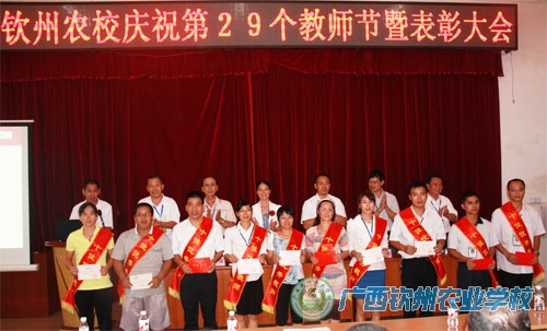 大会首先由覃效敏副校长宣读农业厅的教师节慰问信,传达了自治区农业厅向辛勤工作在教育工作岗位上的教师、教育工作者表示亲切的慰问和致以节日的祝贺;覃一静副校长宣读了有关表彰决定。接着在主席台就座的领导为各类获奖人员颁奖:2012—2013学年度学校共有40人次分别获得各级机关、人民团体颁发的先进个人;第九届全区全国文明风采竞赛中,我校有130份作品分别获奖;24篇教师论文在广西职业教育教学论文评比中获奖;15篇论文获得校级2012年度教职工教育教学及管理科研成果奖;2013年科研成果奖一共是15项;51位同志被评为2012—2013学年度校级先进教育工作者,评出了“十佳”优秀教师和“十佳”优秀班主任。颁奖仪式后,“十佳”优秀教师代表花泽雄老师、“十佳”优秀班主任代表王小凤老师在大会上分别做了教学教育方面工作的经验介绍。