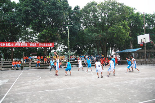 在我校80周年校庆来临之际,10月9日下午,学校学生科组织2012级、2013级学生各班篮球队员代表在灯光球场举行2013年秋季学期“迎校庆”学生篮球比赛开幕式。
