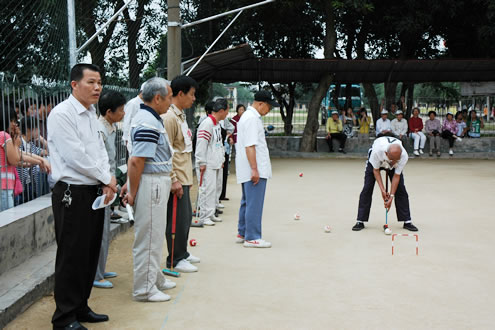 攻,无处不显老同志们过人的智慧,到处都能感受到老同志们洋溢着的活力气息,真正赛出了风格,赛出了水平,为我们奉献了一场场精彩的比赛,达到了切磋球艺、增进理解、加强友谊、增强体质的目的。在本届门球赛中,全体裁判员始终严格要求自己,认真负责,坚持标准,以身作则,以公平、公正、公开的工作作风,保证本届门球赛的圆满完成。