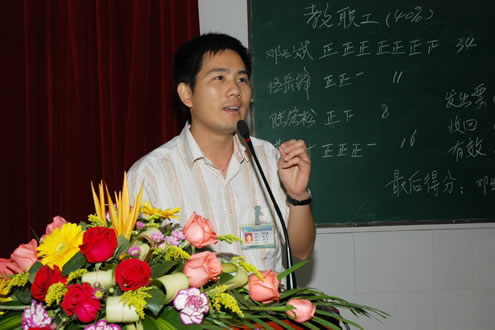 为探索干部选拔任用机制,健全和完善干部选拔任用的民主化建设,进一步激发竞争机制,增强中层干部活力,我校开展了直选学生科副科长工作。经过宣传发动,个人自荐报名,组织考核等程序,确定4位同志符合直选候选人资格。2007年4月29日下午召开了全体教职员工参加的直选大会,会上4位候选人分别进行了演讲及答辩。经全体教职员工投票,青年教师邓业斌同志当选。