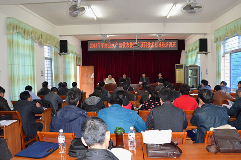 平南县水产畜牧农技推广项目技术指导员培训班于1月2日至6日在我校开班培训。本期培训班共38名学员,主要来自平南县各兽医站的技术指导员。培训内容主要以水产畜牧生产技术推广新知识、动物防疫知识、兽医知识、特种养殖技术为主,结合水产畜牧业业相关法律法规以及水产畜牧产品安全生产监管知识,培训形式以集中培训与参观学习相合。培训工作由学校培训中心组织实施,培训过程安全、有效。