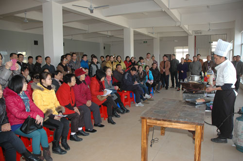 1月14日下午,食品加工专业的黄玉叶老师在学校食堂三楼为参加培训的教职工详细讲解了几道家常菜的做法,并就菜肴的烹饪方法做了全过程的演示。学员们很认真地观摩,并在黄玉叶老师的指导下,兴致盎然地进行了动手实践操作。