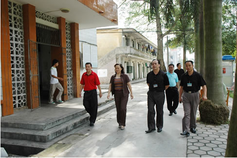 郑文临组长(左二)一行在刘波校长(左三)等学校领导陪同下参观校园(一)郑文临组长一行在刘波校长等学校领导陪同下参观校园(二)郑组长在考察学生公寓楼