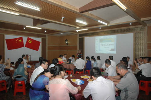 我校在家的处级领导和钦台农公司的副总经理也参加了培训,伍国樑校长也在培训班上讲课。