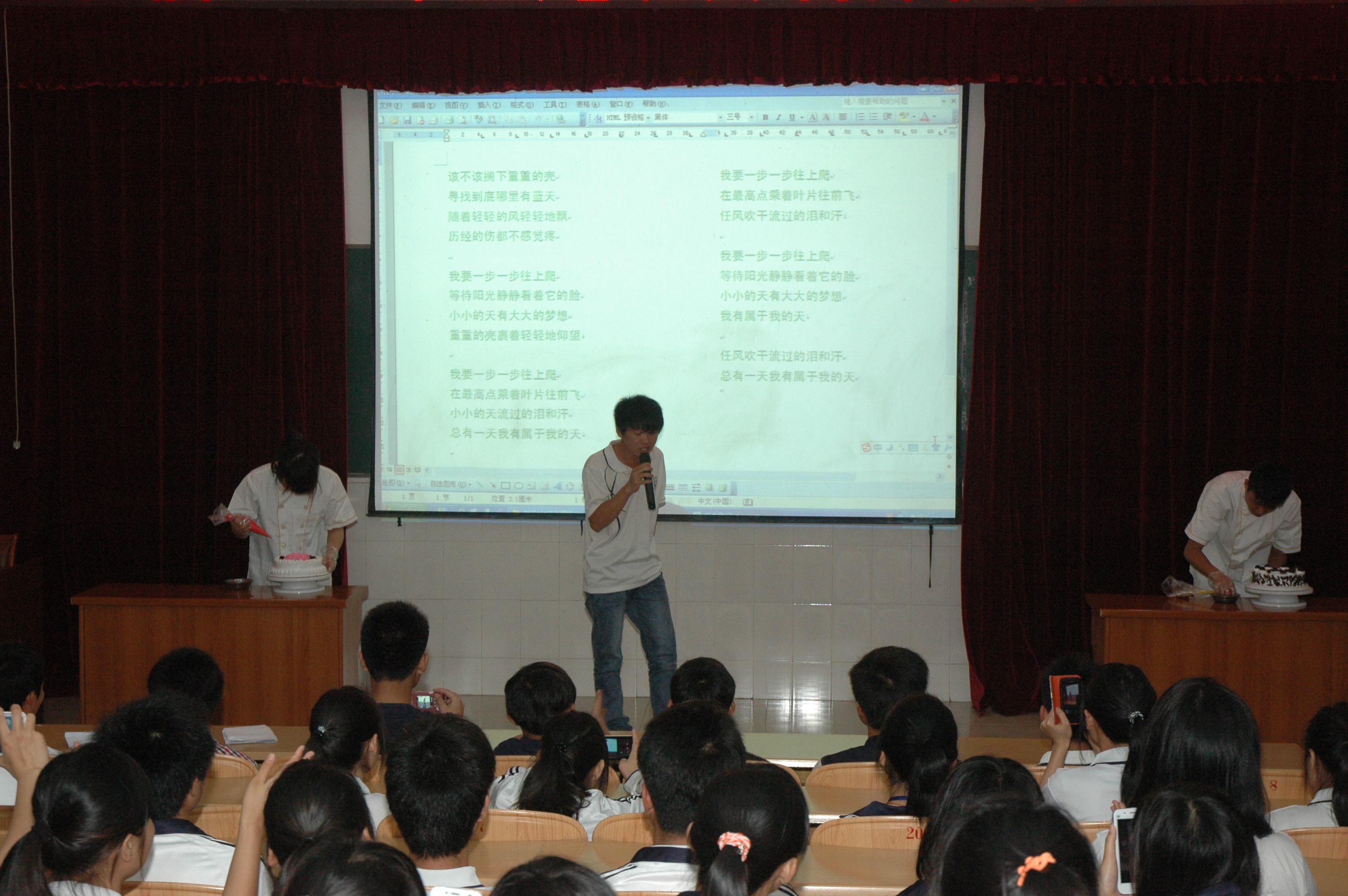 此次班会课的目标是让每个学生拥有自己今后的就业梦想,并为实现这个梦想所制订的规划方案提供充足的信心源泉。为了开好此次班会,加工121班在前期准备中收集了大量的资料,对班会内容精心设计。学生通过观、听、说、演、唱等形式,感触主题思想,激发学生学习热情,使学生懂得理想、目标是自己人生路上勇往前行的动力。